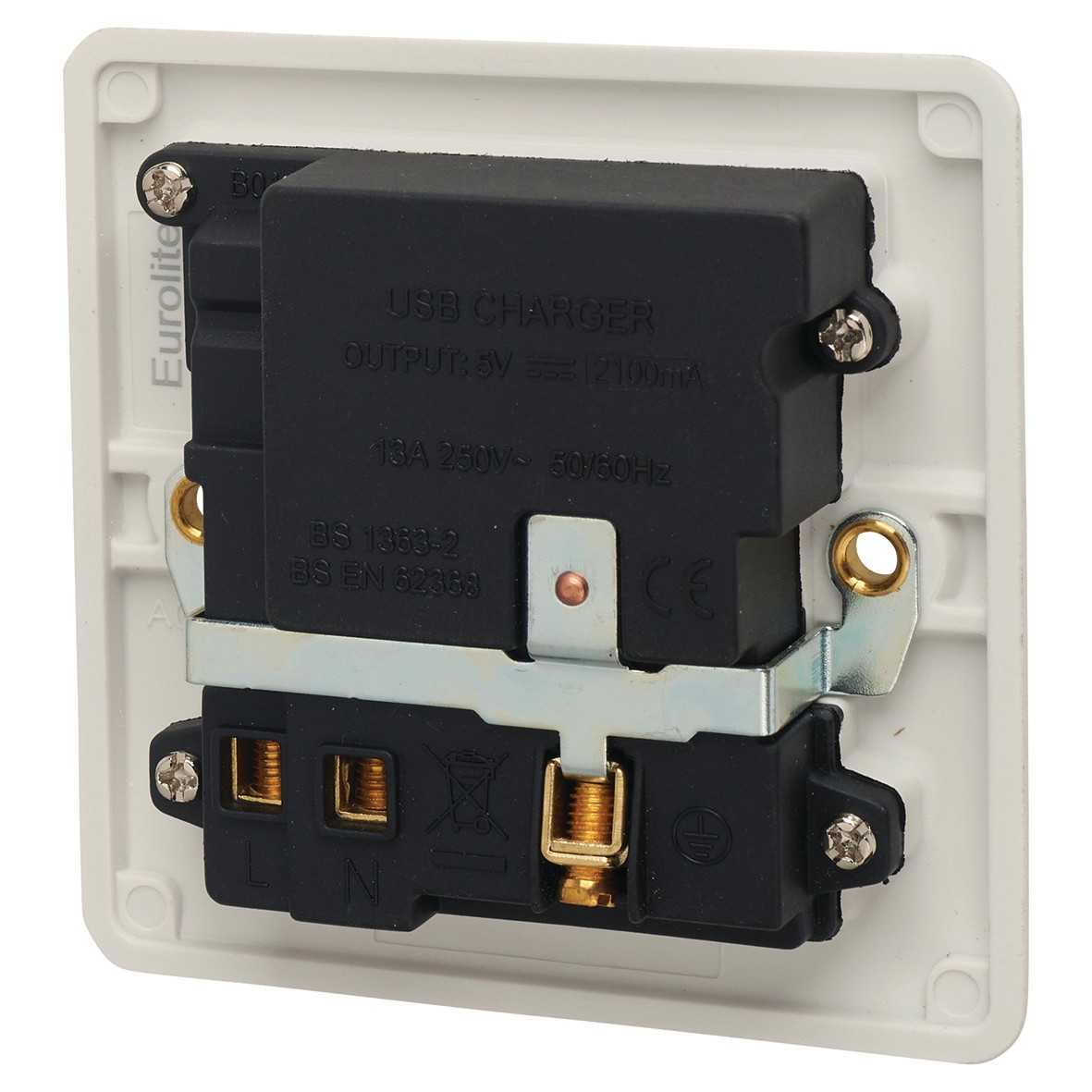 : Eurolite Enhance 13A 1 Gang USB Socket with 1 x USB – 2.1A – White 192678