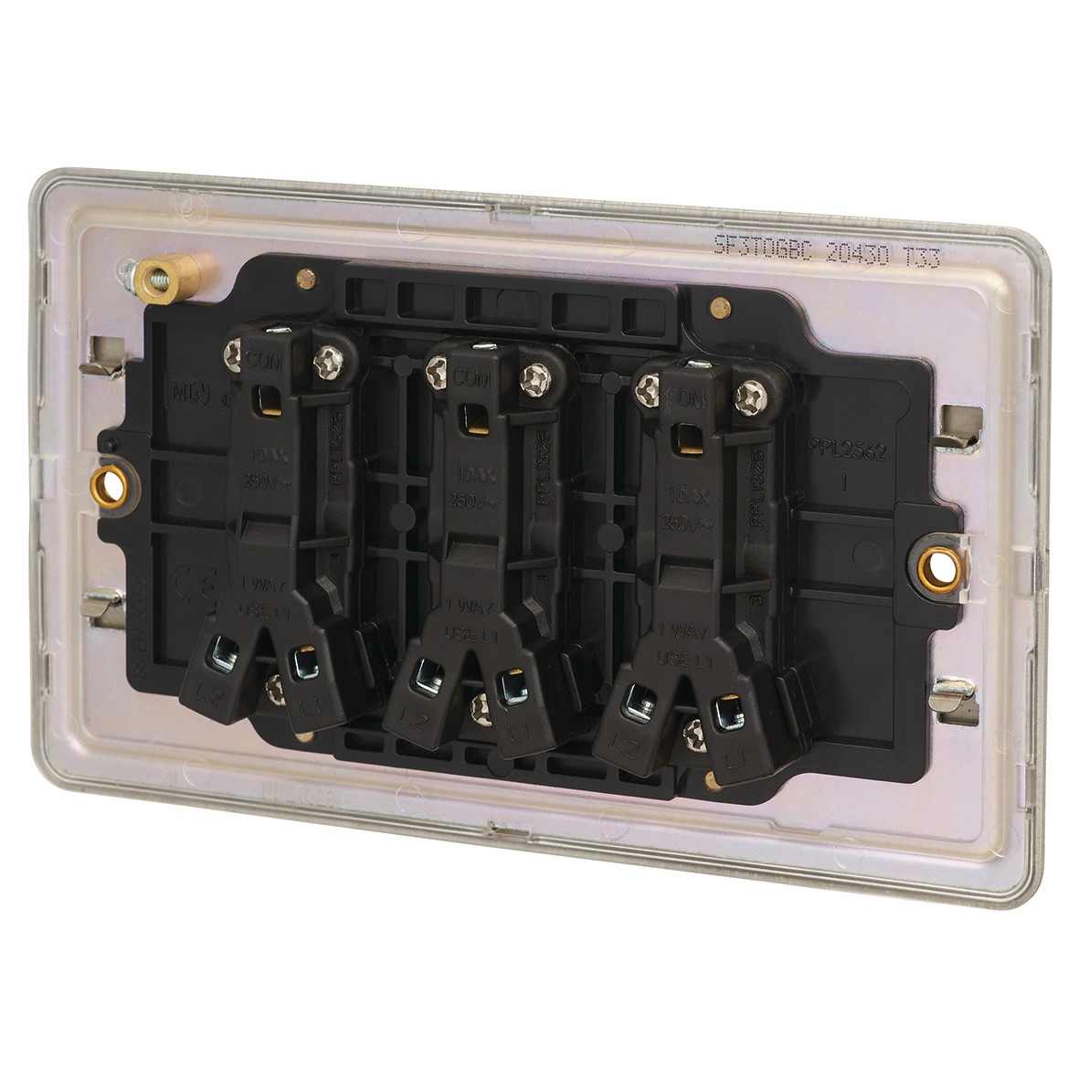 : Knightsbridge 10AX 3 Gang 2 Way Toggle Switch – Brushed Chrome 635117