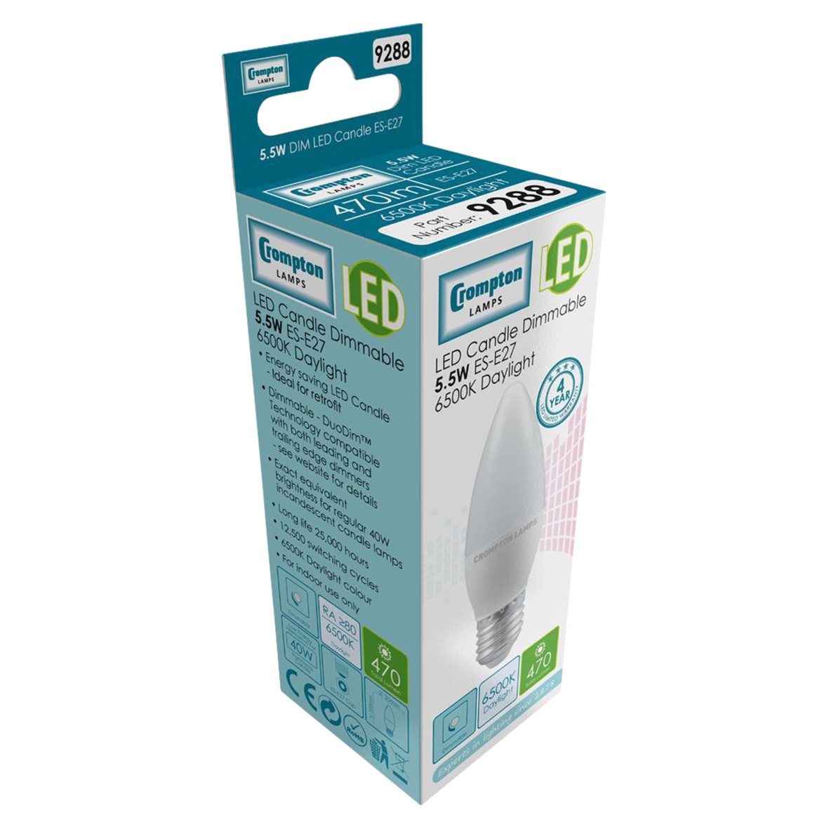5x Crompton 9288 5.5W LED Candle Thermal Plastic Lamp – E27 – Dimmer 507759