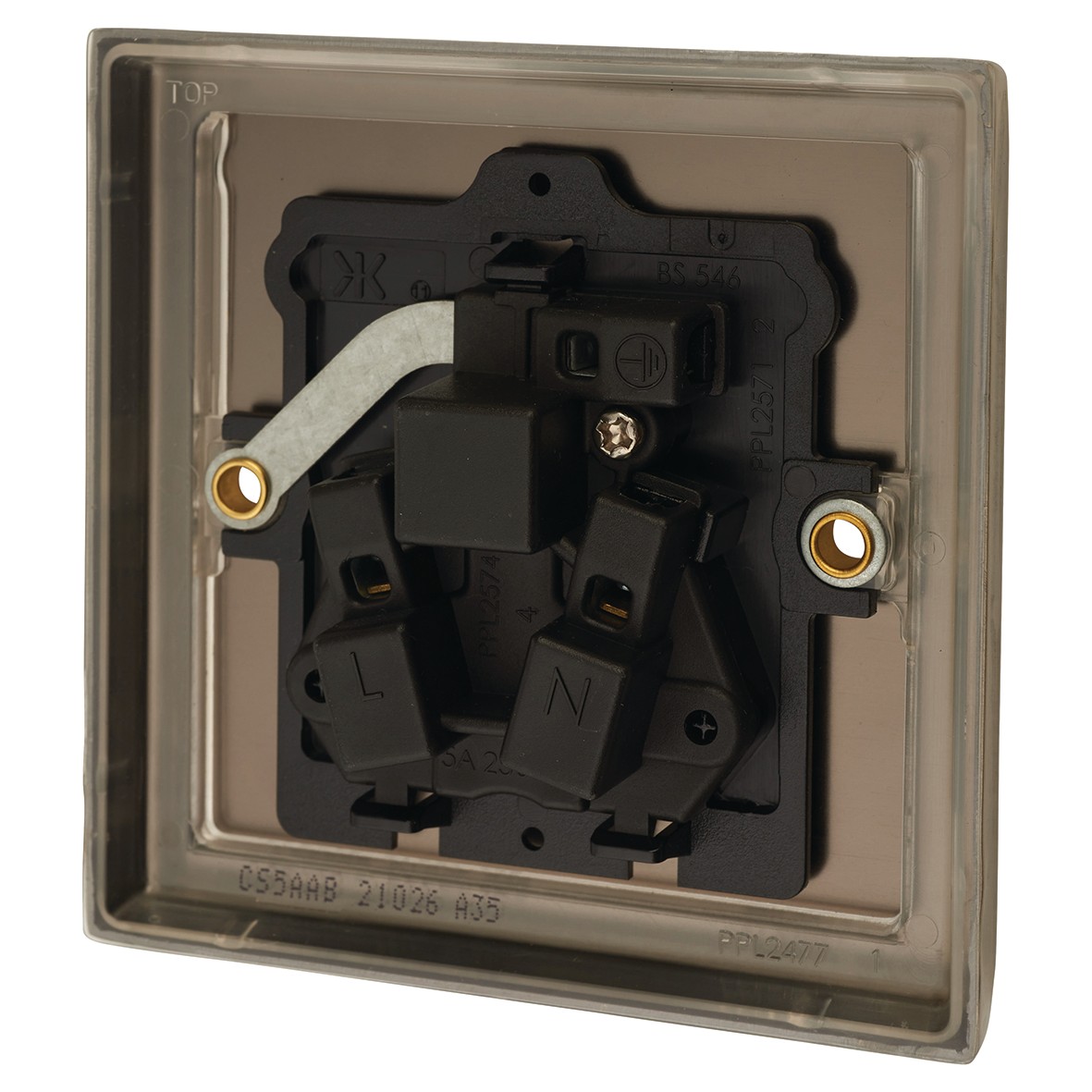 : Knightsbridge 5A Unswitched Socket – Antique Brass Finish with Black In 186785