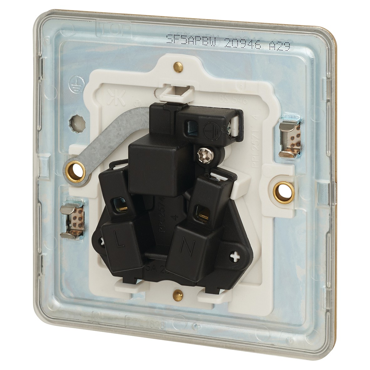 : Knightsbridge 5A Unswitched Round Pin Socket – Polished Brass with Whit 984704