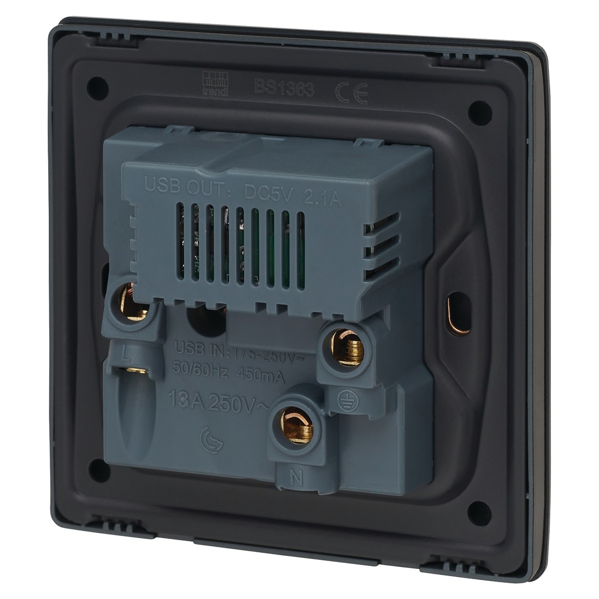 : Trendi 13A 1 Gang Screwless Switched USB Socket with 2 x USB – 2.1A – G 374204