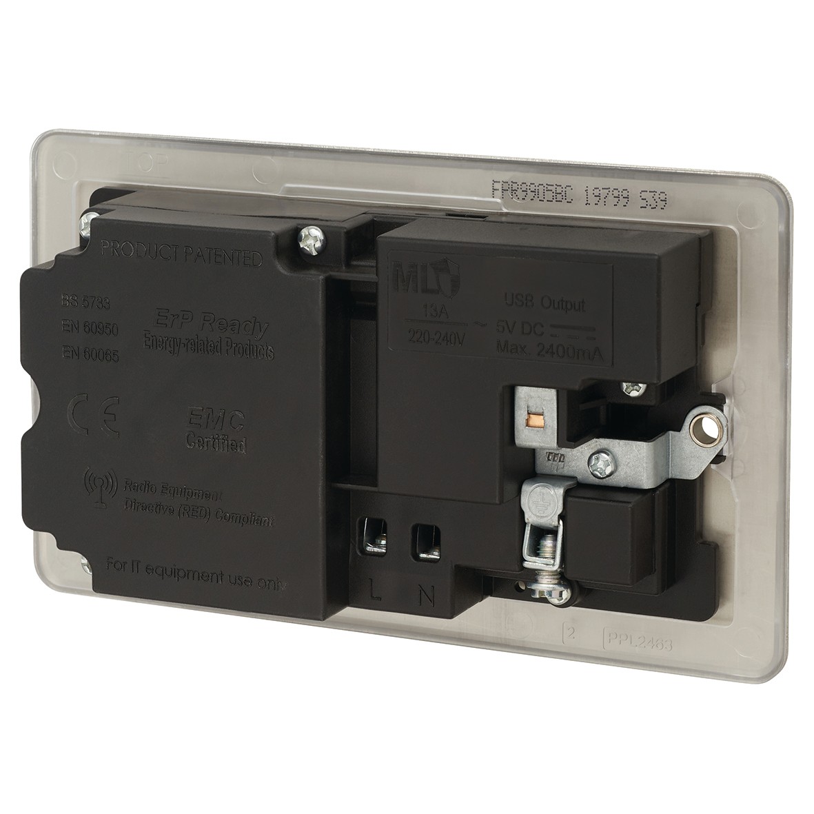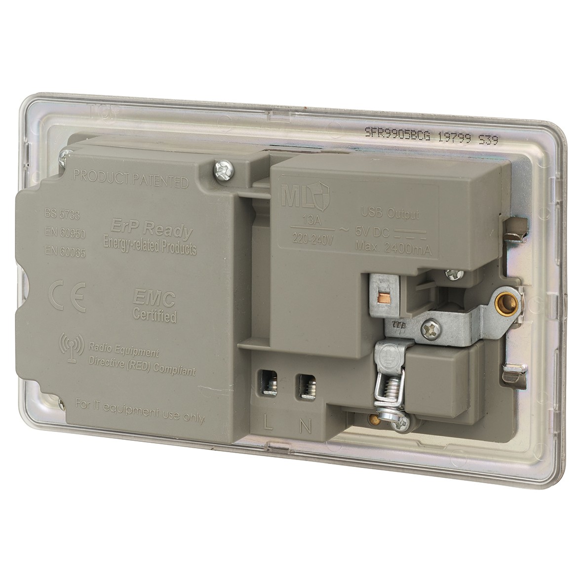 BG Screwless Flatplate 13A SS with USB Charger – 2×2.1A Outlets – Polis 252798