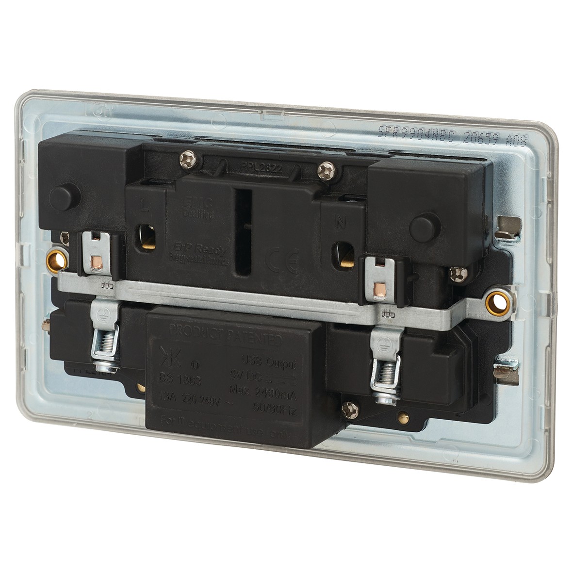 : Knightsbridge 13A 2 Gang Switched Socket with USBs & Indicators – Brush 470924