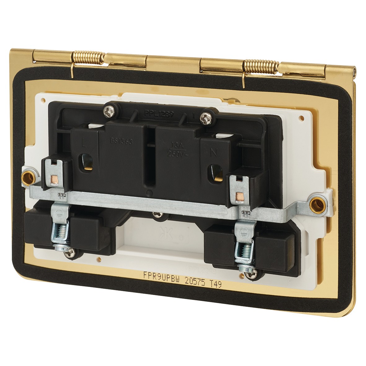 : Knightsbridge 13A 2 Gang Unswitched Floor Socket – Polished Brass with 421418