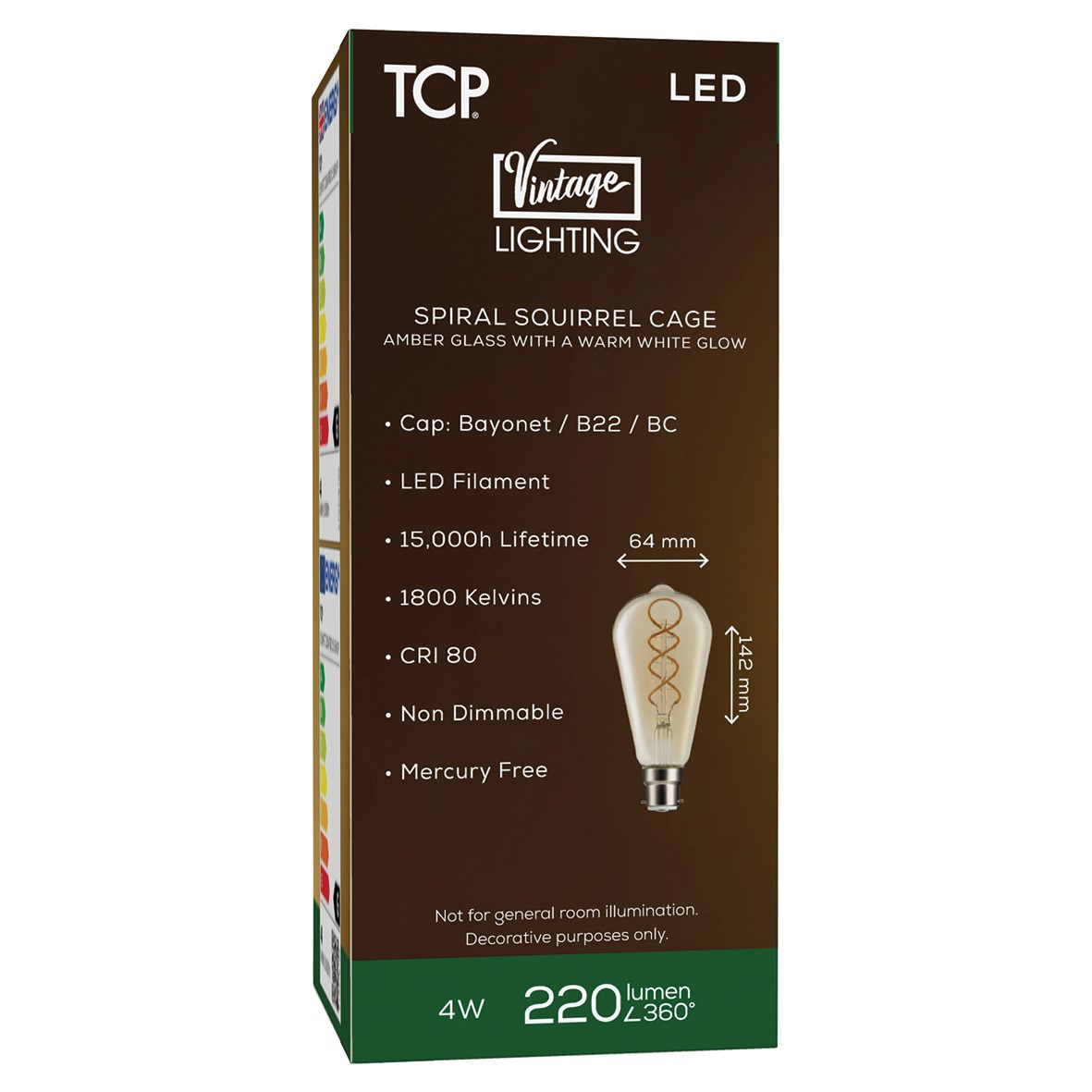 5x TCP 4W BC-B22 LED Filament Vintage ST64 Squirrel Cage Lamp – Amber 185762