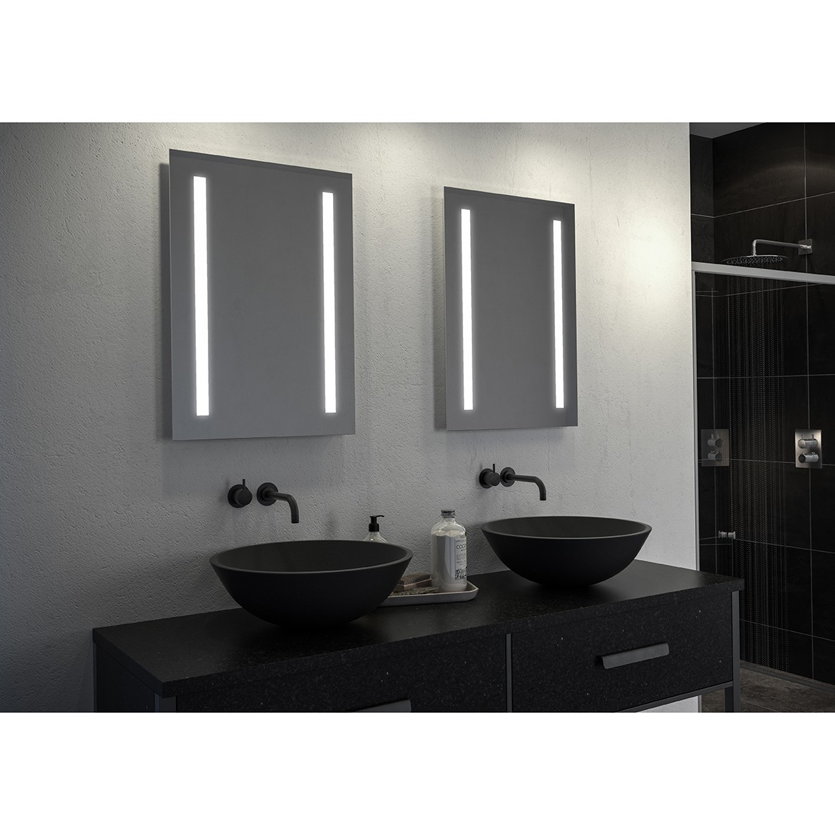 - Cool white, diffused LED vertical strip feature illumination