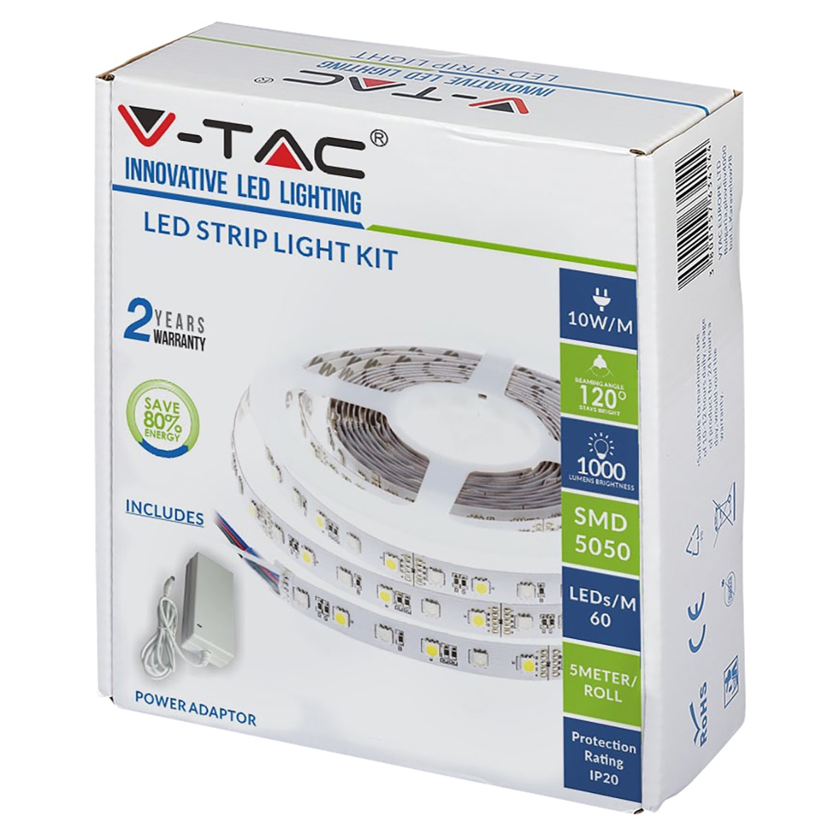 V-TAC 10W Flexible LED Cabinet Strip Light – IP20 rated strip light, perfect for indoor applications