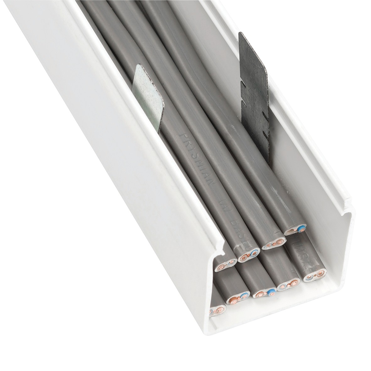 - Can also be retrofitted in existing PVC trunking – a more cost effective solution to ensure cable installation meets new requirements of 18th Edition