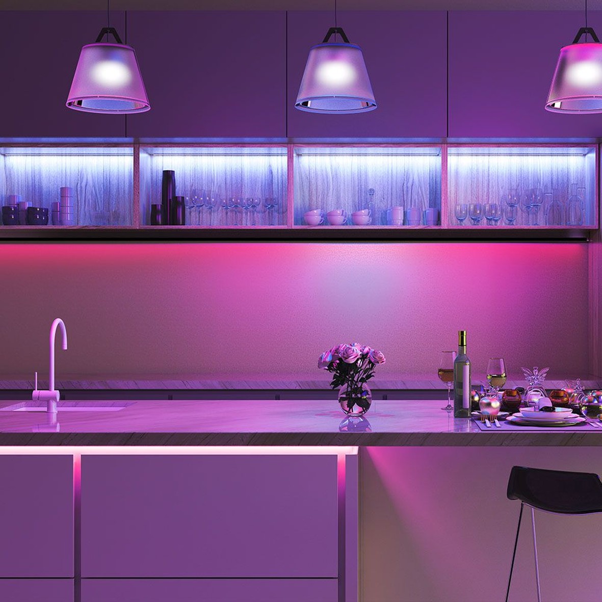 - RGB LED strip light kit with power adapter