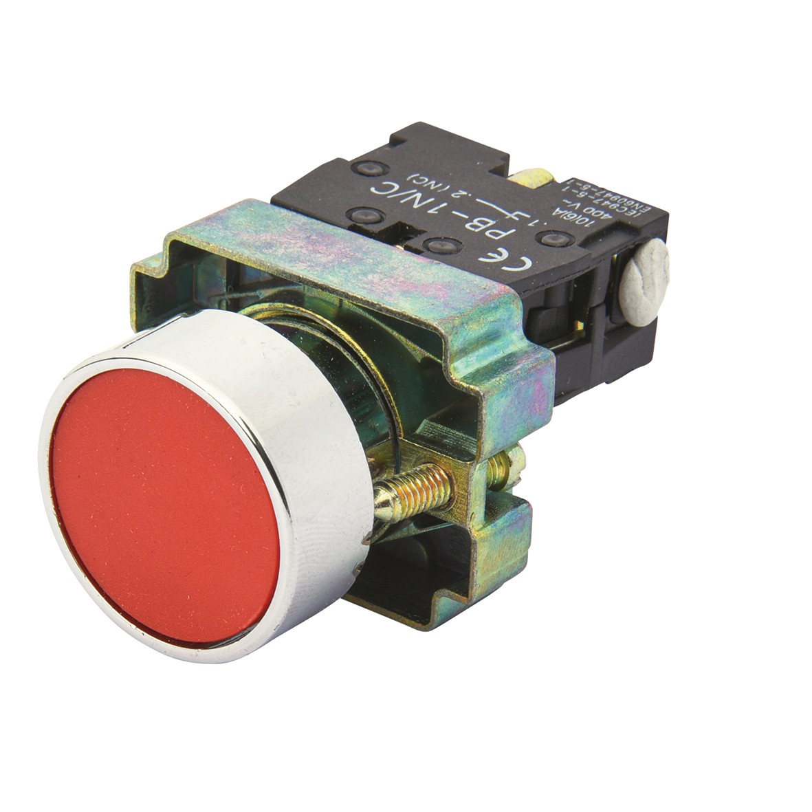 5x Lewden Red Push Button – Auxillary contact rated 10A thermal; Supplied with auxillary contacts