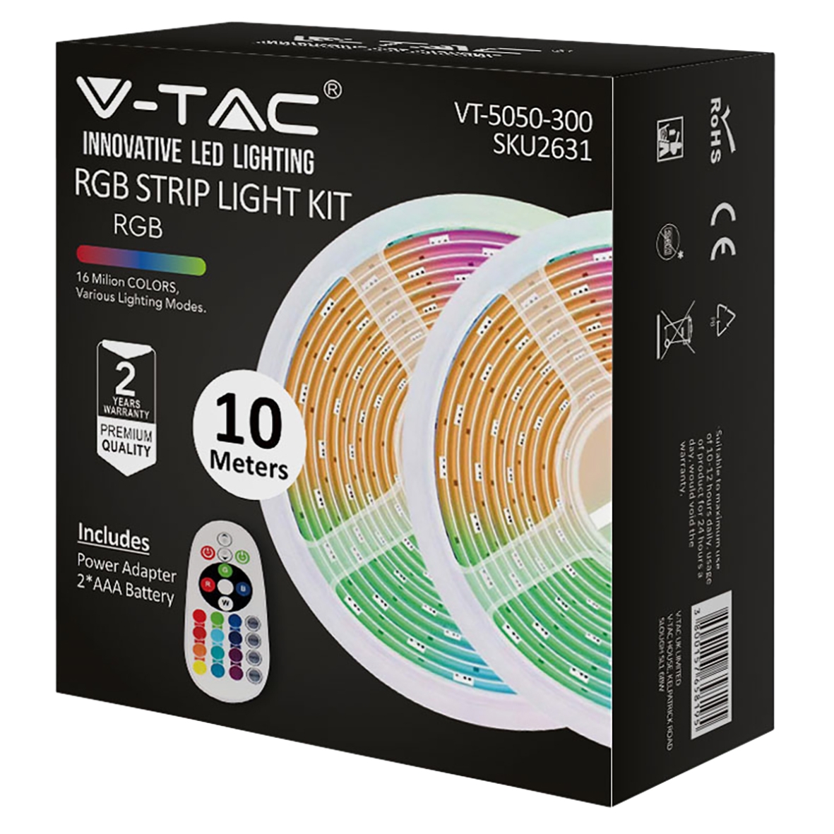 V-TAC 4.8W Flexible LED Cabinet Strip Light Kit – Includes: 2 x 5m roll with BS plug type