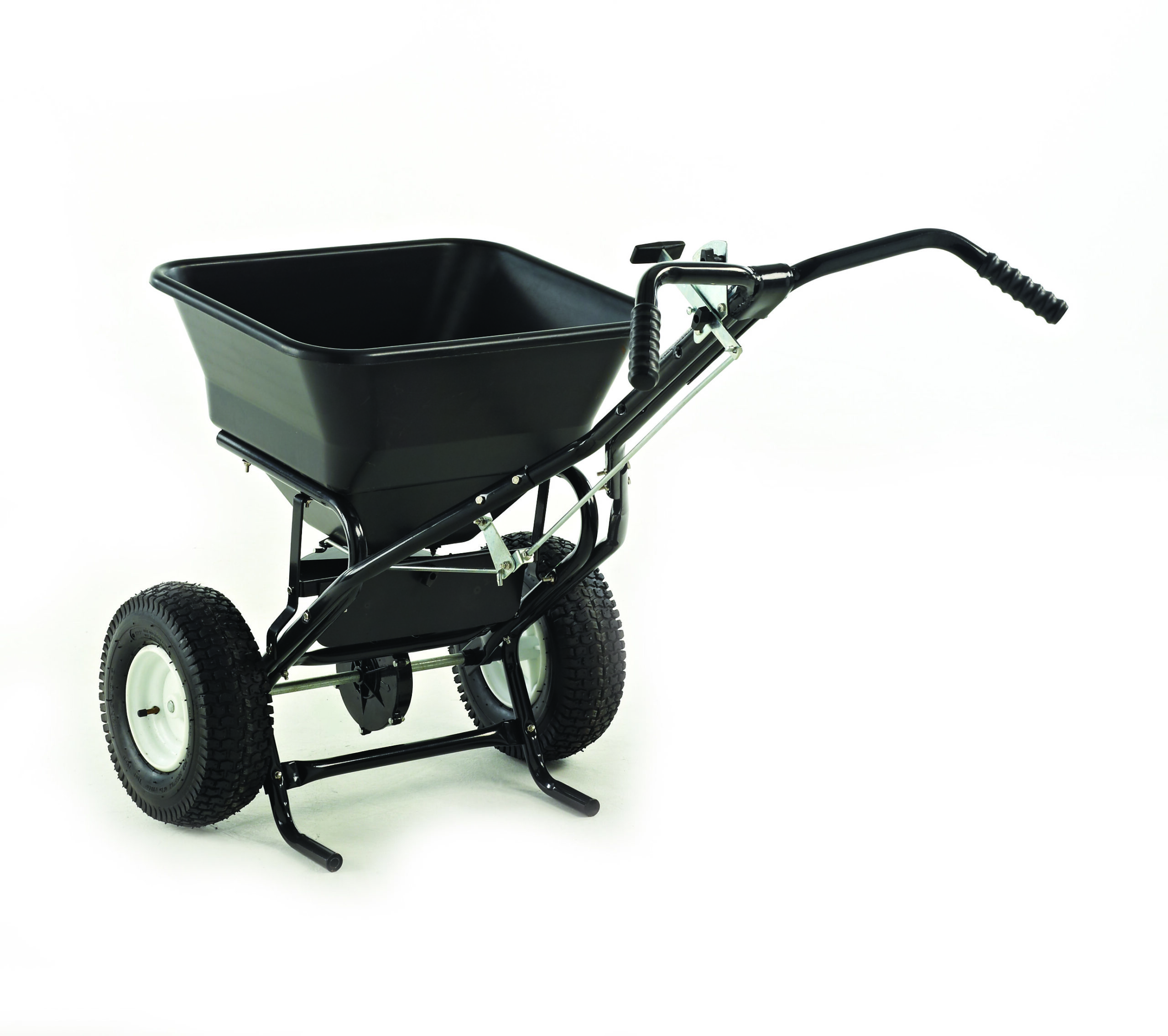 25kg capacity salt spreader with 310mm pneumatic wheels and up to 3m spread width.