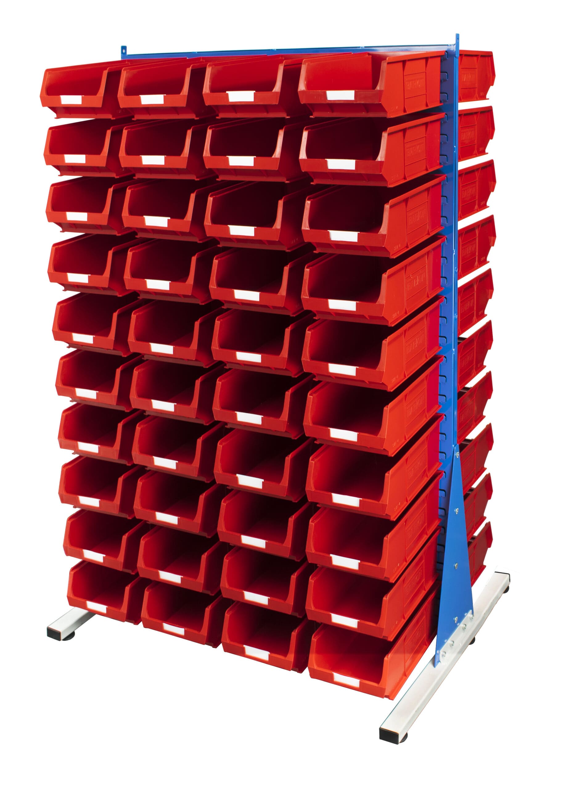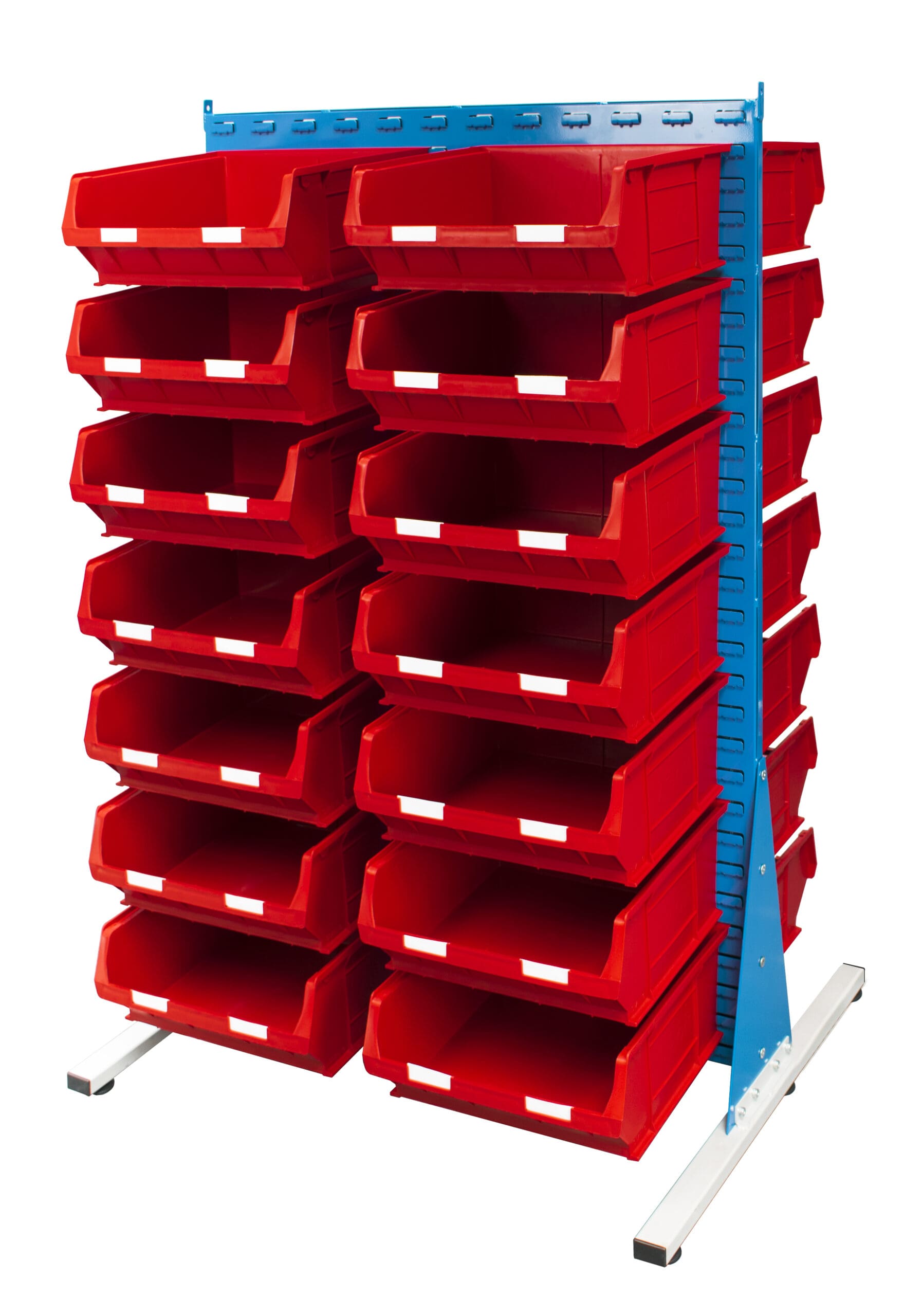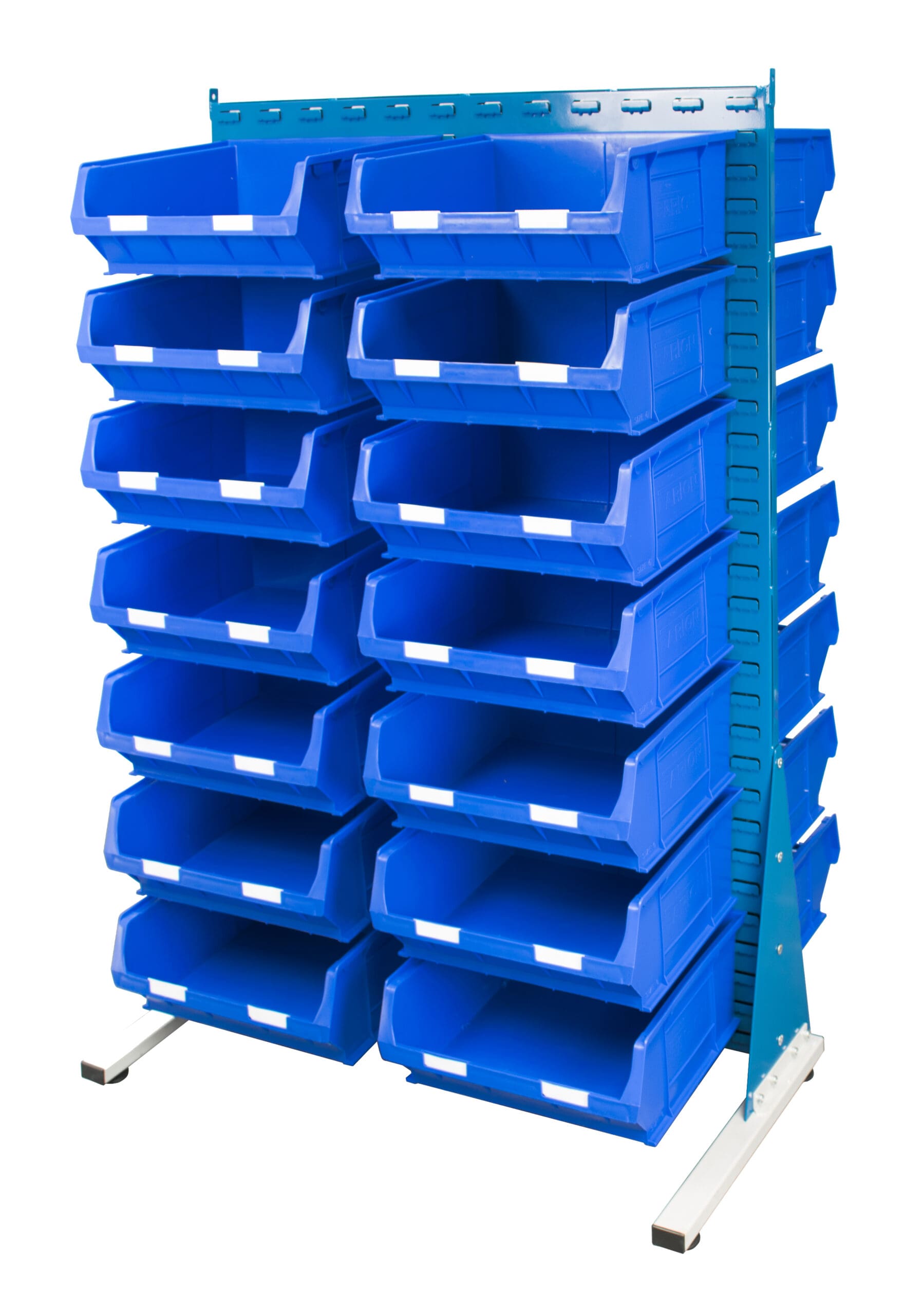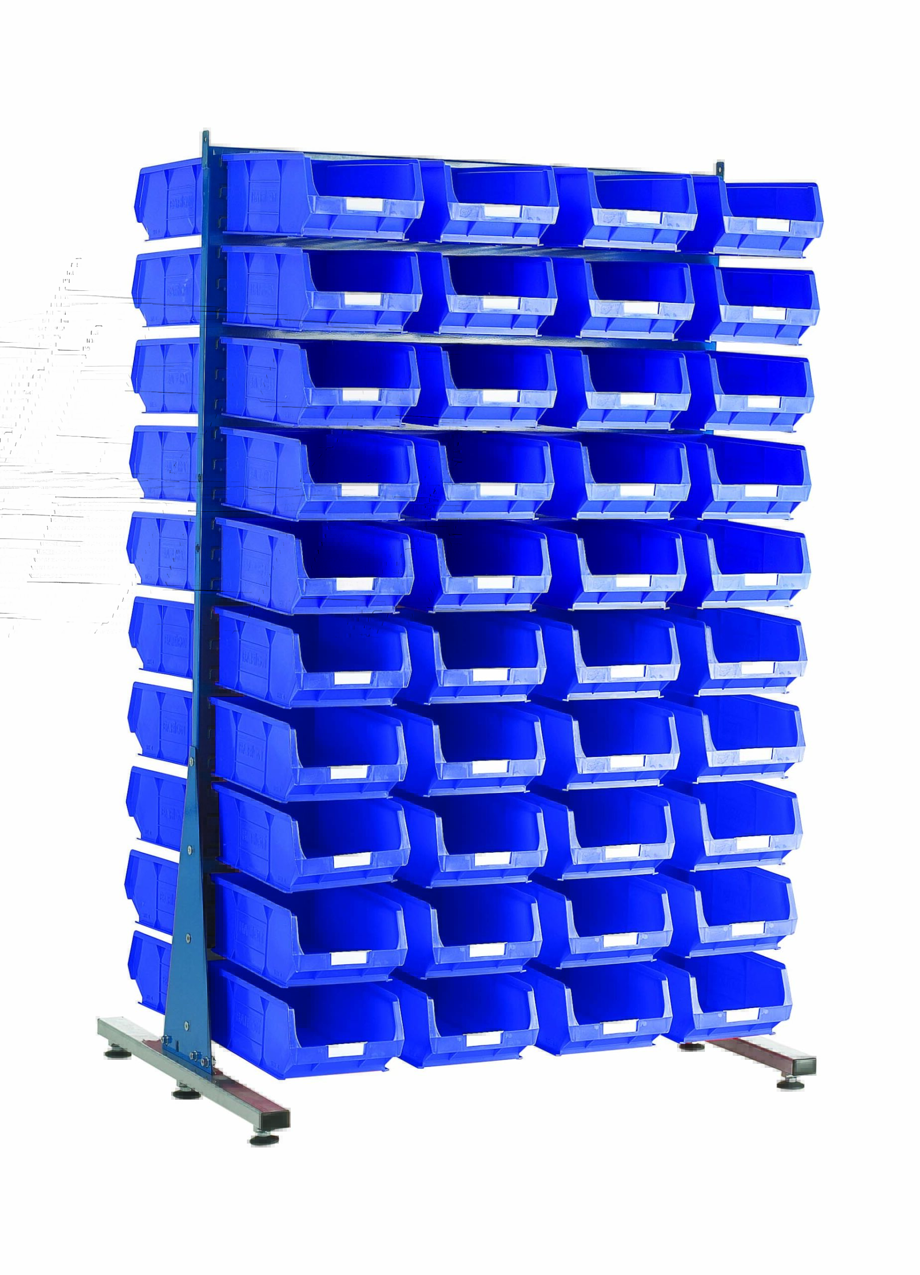 Modular freestanding storage units compatible with open fronted containers, available in multiple sizes.