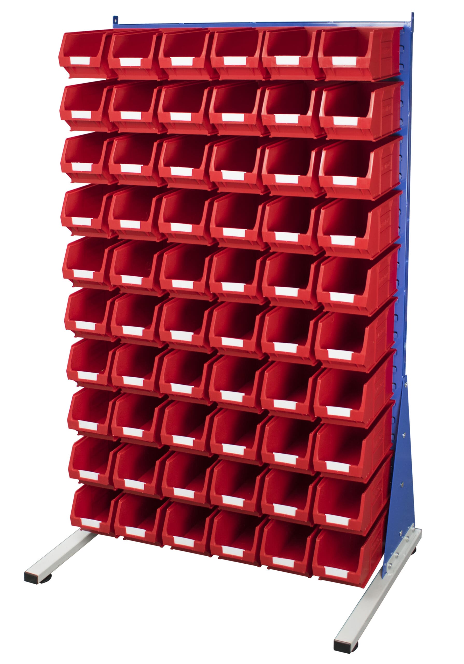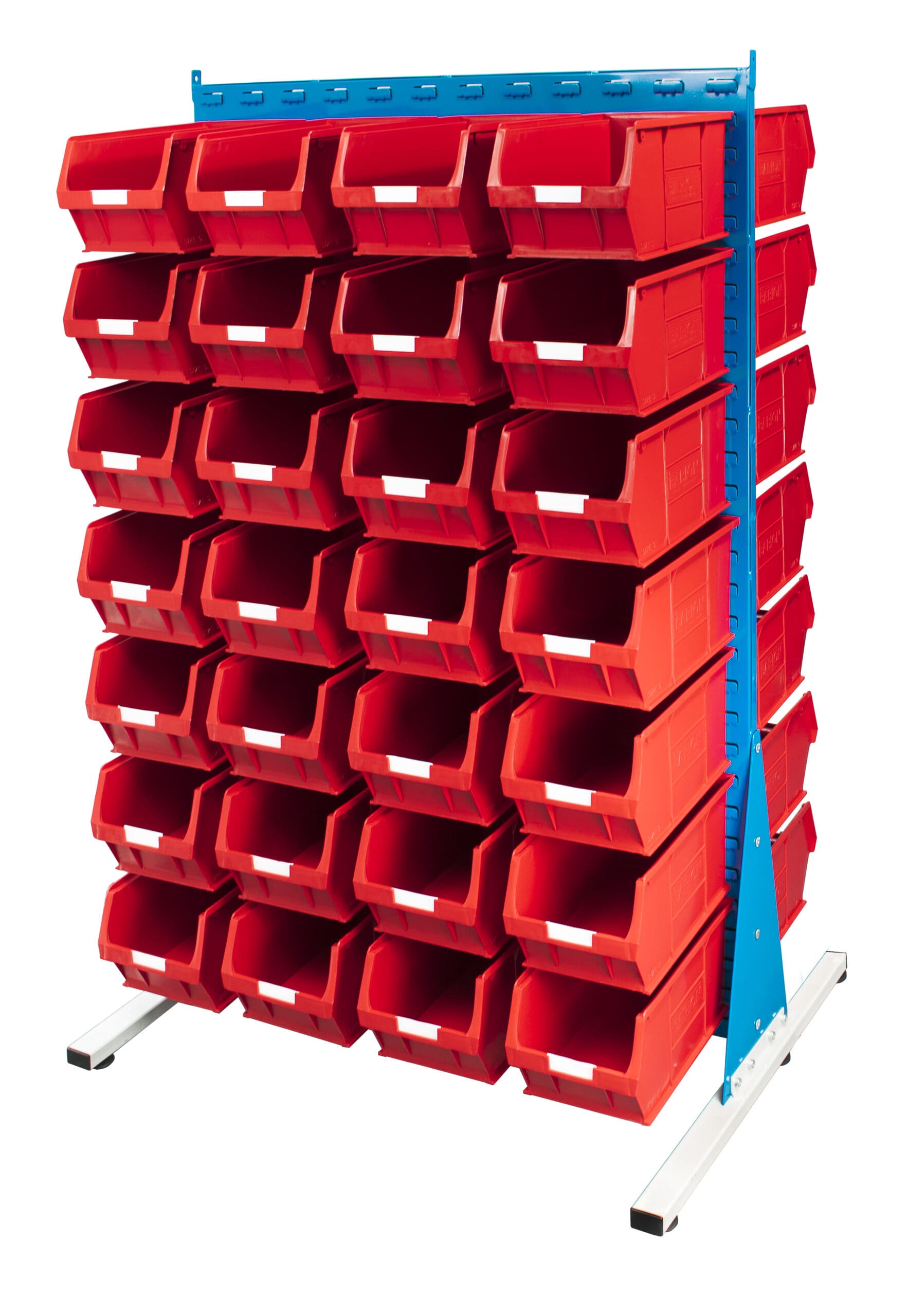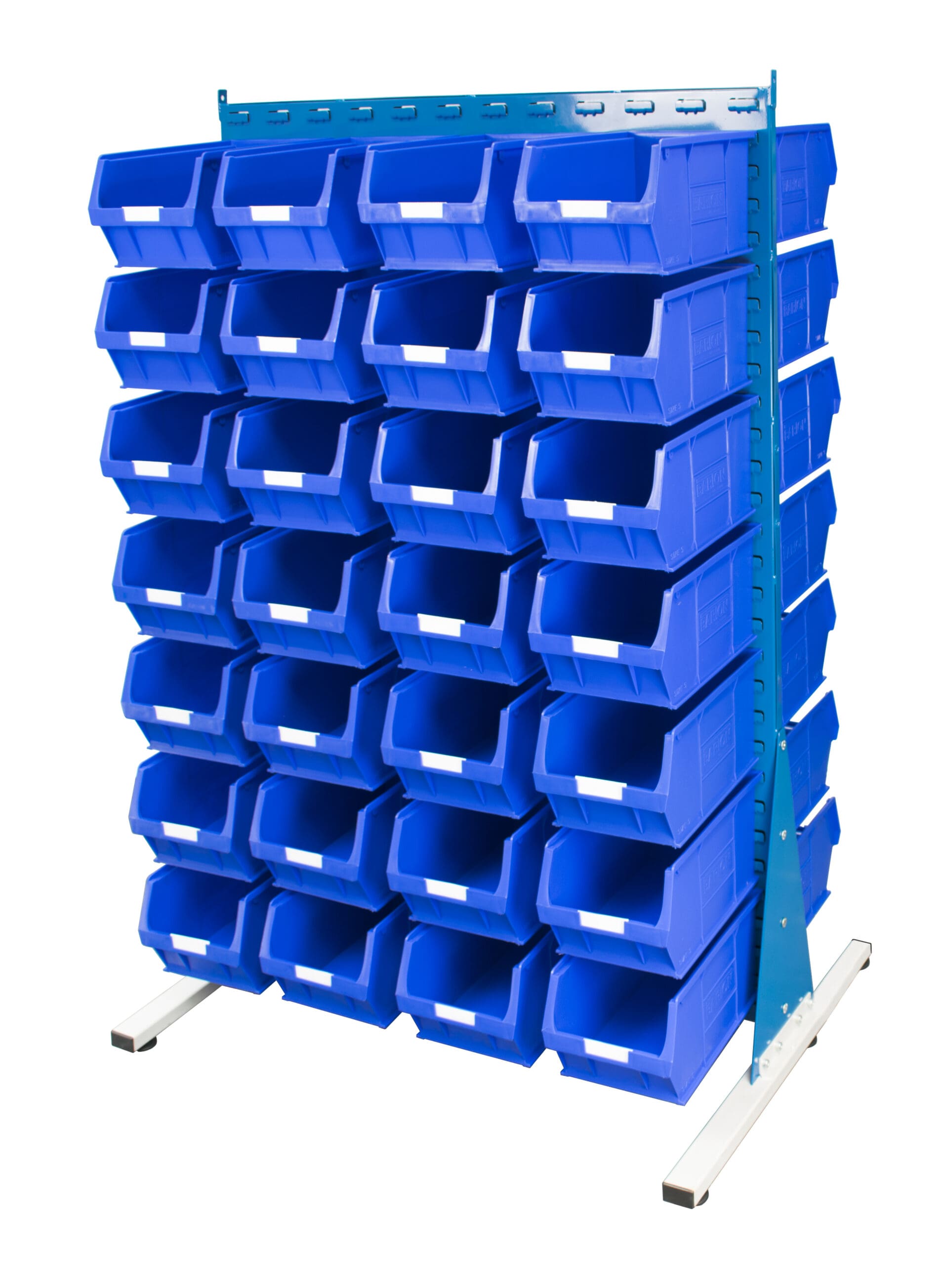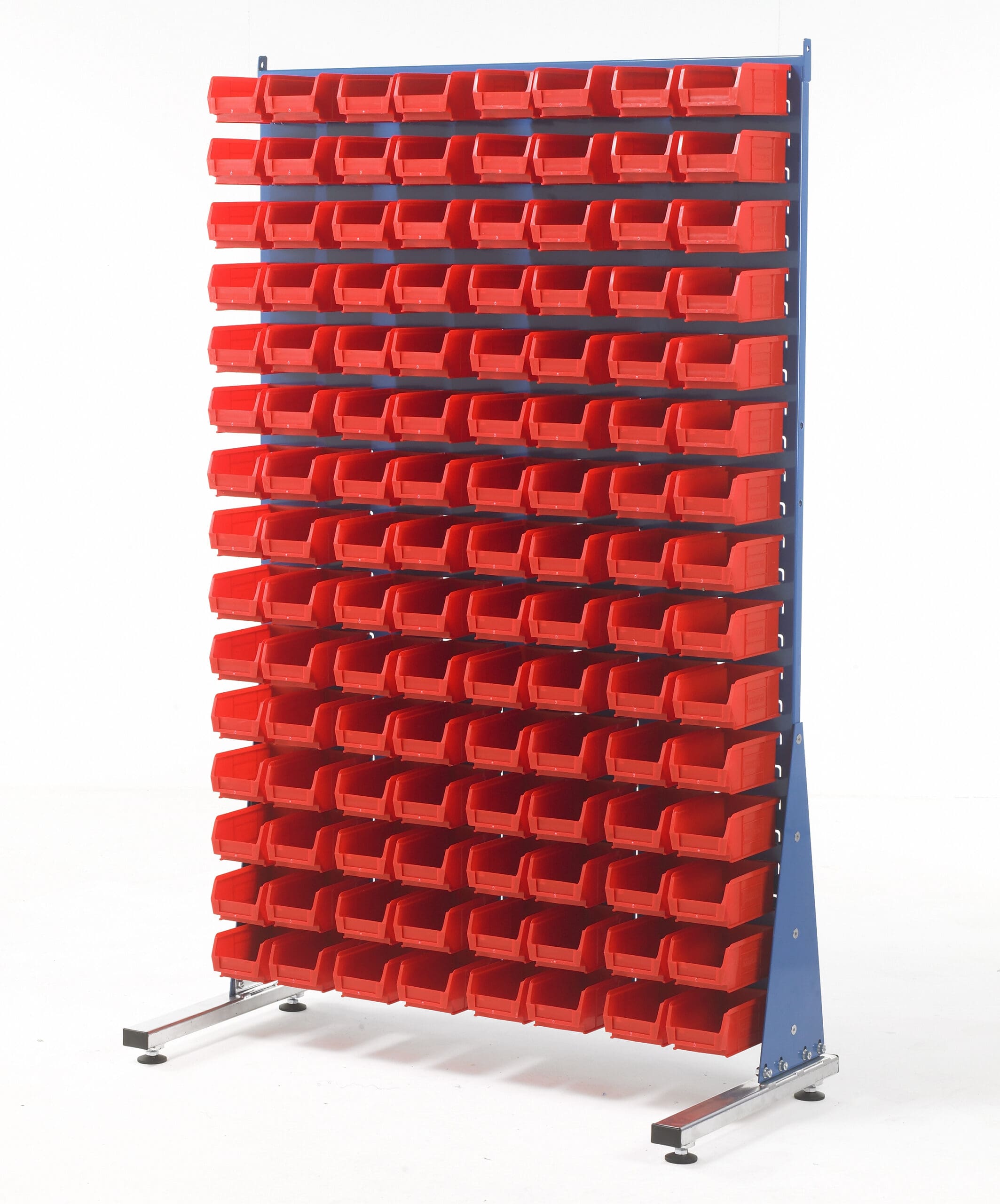 Modular freestanding storage units compatible with open fronted containers, available in multiple sizes.