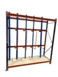 Compact vertical storage attachments for racking designed for efficient storage of long, upright items in workshops or warehouses.