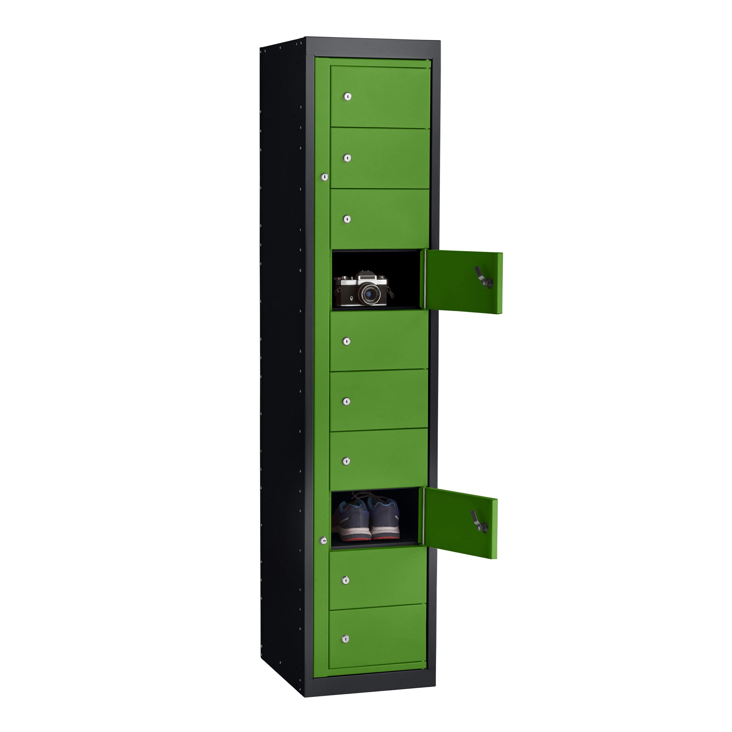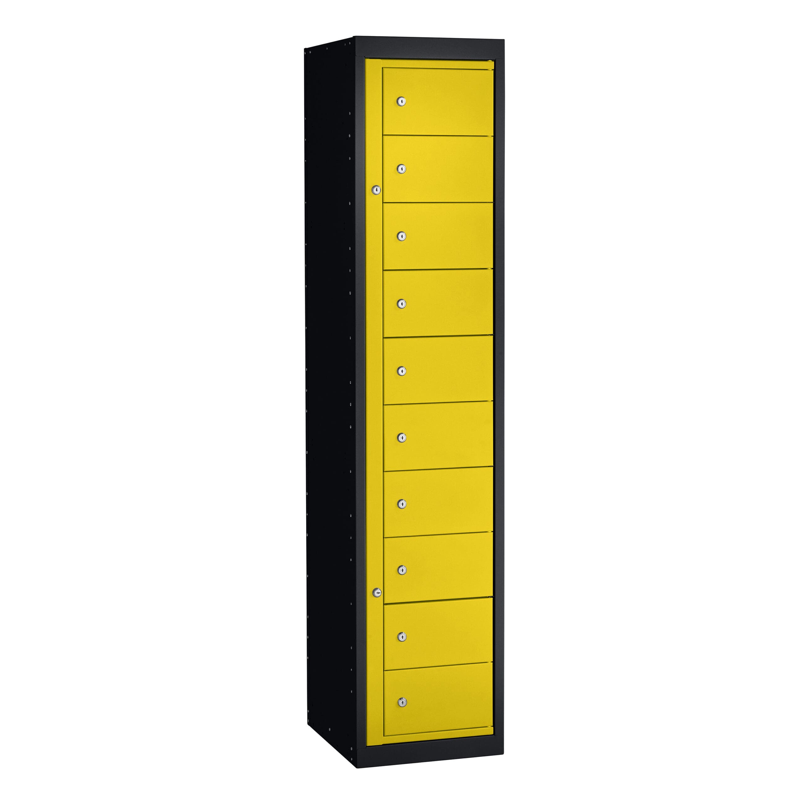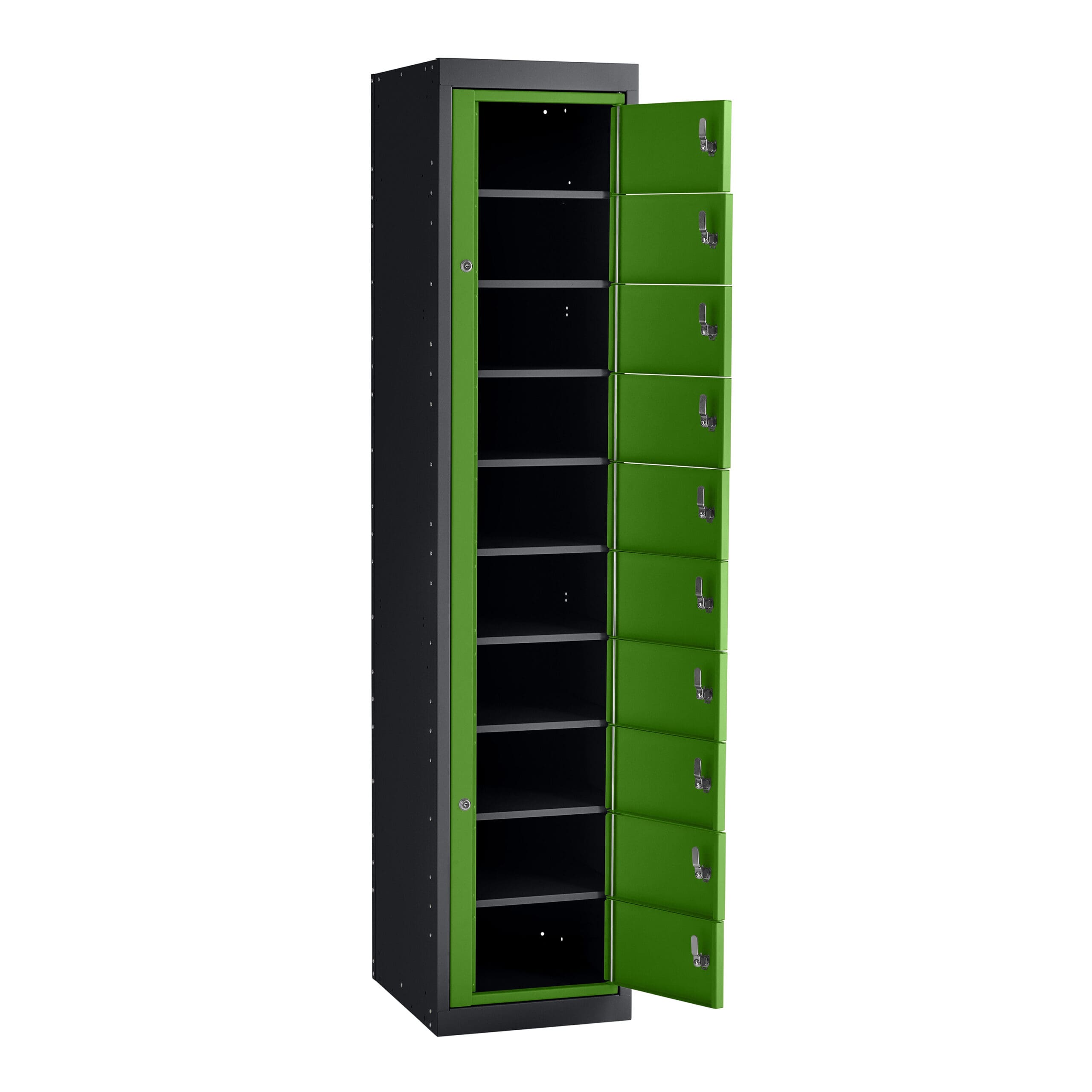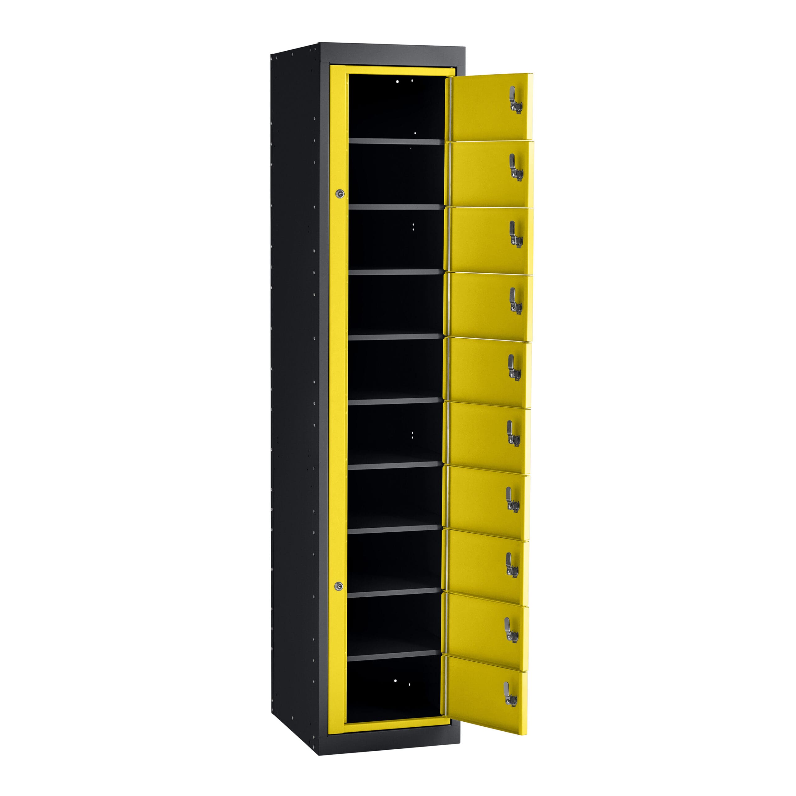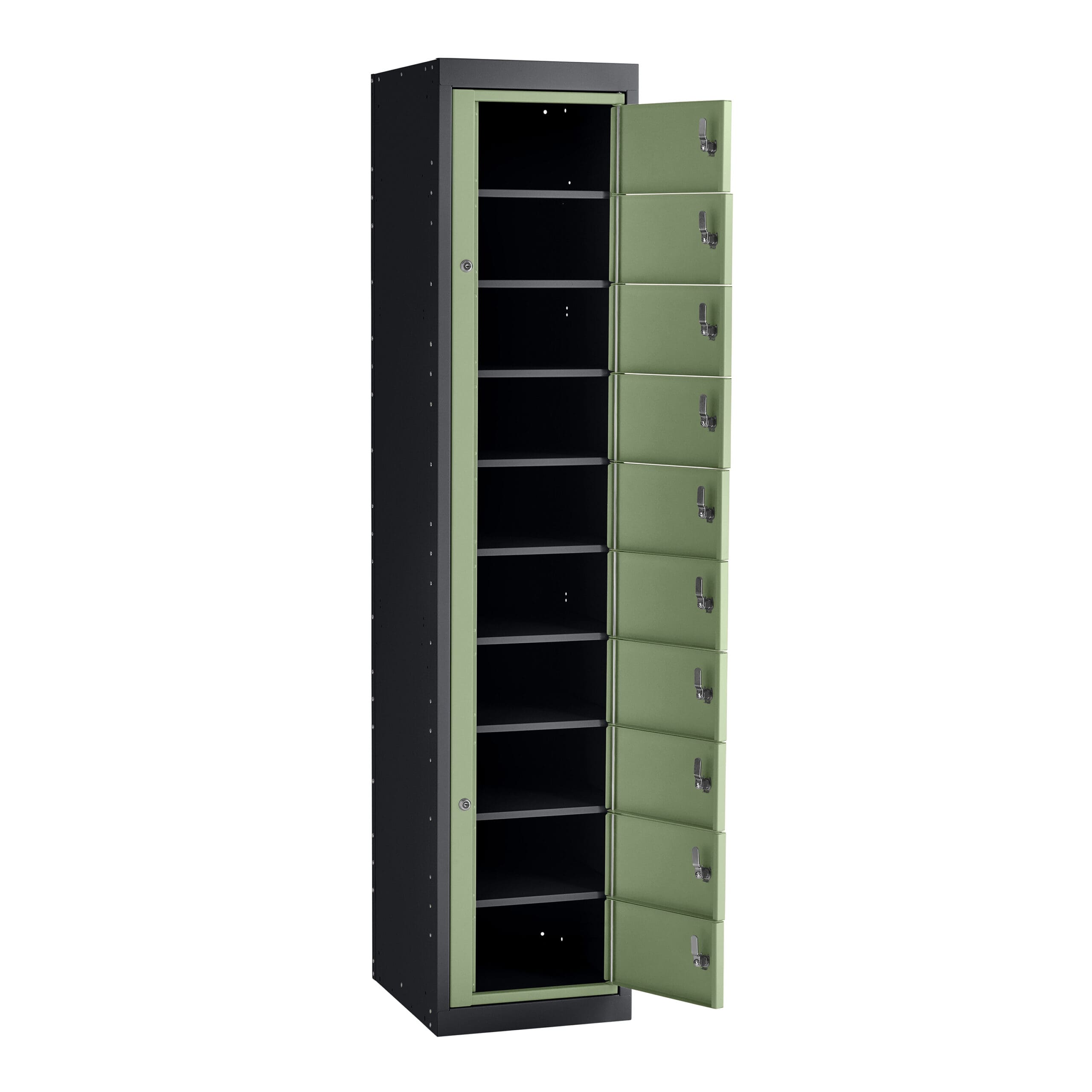 Garment dispenser lockers with 5, 10, or 15 secure compartments, ideal for uniform distribution in industrial, commercial, or hospitality settings. Ventilated, coin-operated, and available in multiple colours.