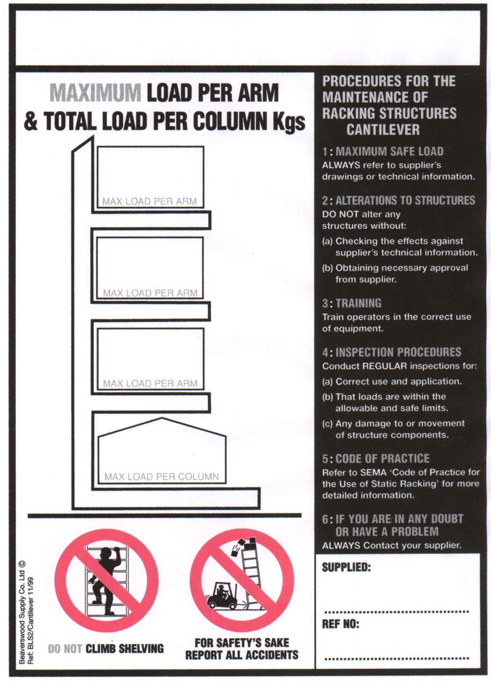 Cantilever Racking Load Notice