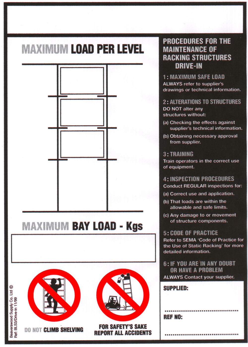 Drive In Racking Load Notice